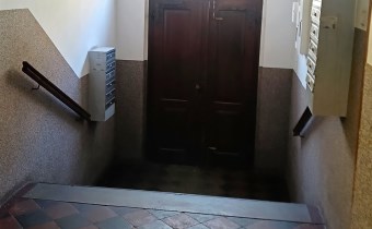 Klatka schodowa czysta, zadbana zamykana domofonem.