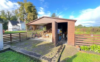 W skład oferty wchodzi również sprzedaż działki o powierzchni 155 m2, zabudowanej dwoma garażami i wiatą na drewno ze składzikiem. Teren działki ogrodzony i zagospodarowany, z licznymi nasadzeniami i oczkiem wodnym. Podatek gruntowy za działkę 62 zł kwartalnie.
