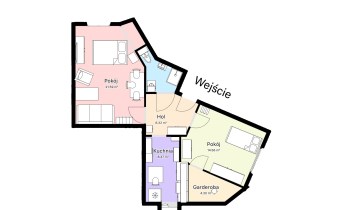 Składa się z salonu z wydzielonym schowkiem z możliwością zaadoptowania na garderobę lub inną zabudowę, sypialni z wydzieloną garderobą, kuchni, łazienki z wc, przedpokoju i schowka..