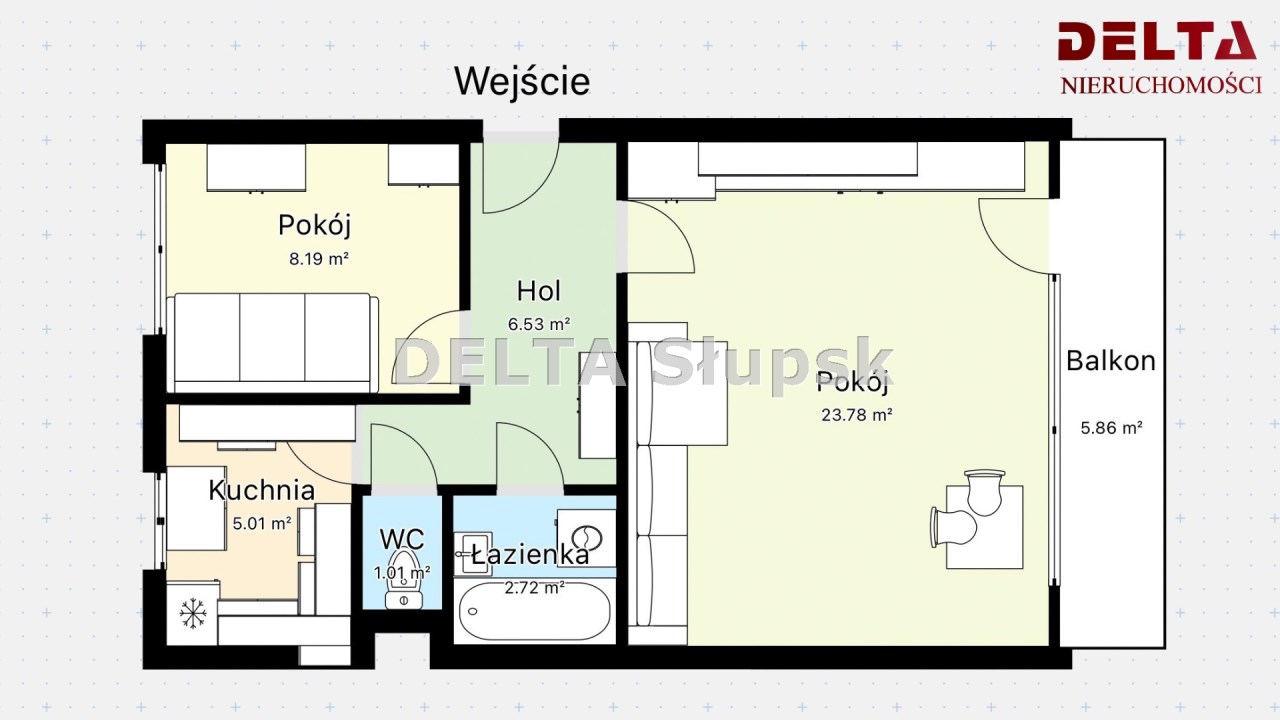 Dwupokojowe mieszkanie o powierzchni 48,6 m2 w Ustce, 15 minut spacerem od morza..