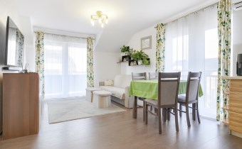 - salon z aneksem kuchennym i wyjściem na duży balkon,