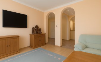 Mieszkanie jest dwustronne, z ekspozycją okien wschód–zachód, dzięki czemu pozostaje jasne i dobrze doświetlone przez cały dzień.