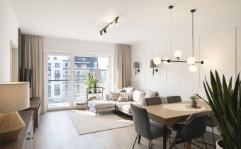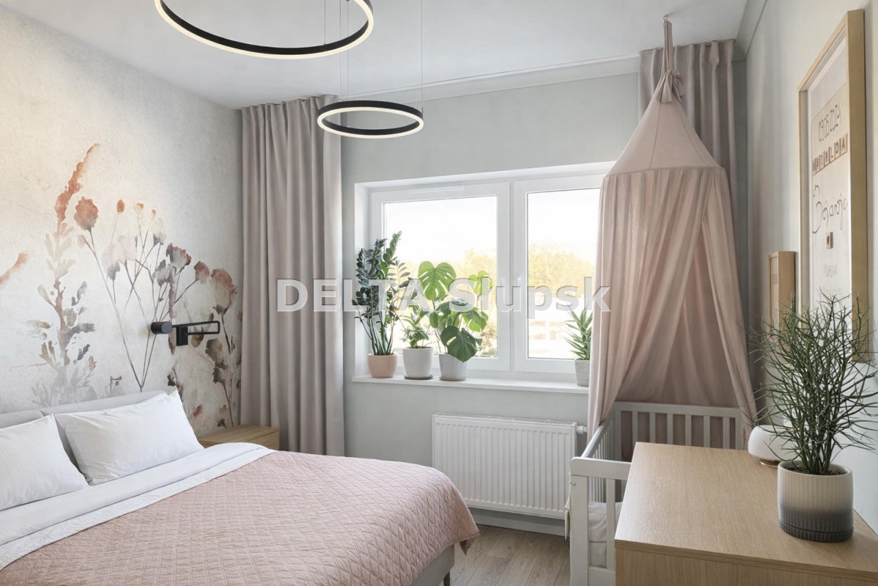 Mieszkanie zostało wykończone i wyposażone z dbałością o detale. Sercem domu jest przestronny salon połączony z aneksem kuchennym, z którego wyjdziesz na duży, zachodni balkon – idealne miejsce na kawę przy zachodzie słońca. Trzy ustawne sypialnie dają komfort każdemu członkowi rodziny lub pozwalają na aranżację wygodnego biura do pracy zdalnej. Dodatkowym atutem jest garderoba przy sypialni rodziców, która rozwiązuje problem przechowywania.